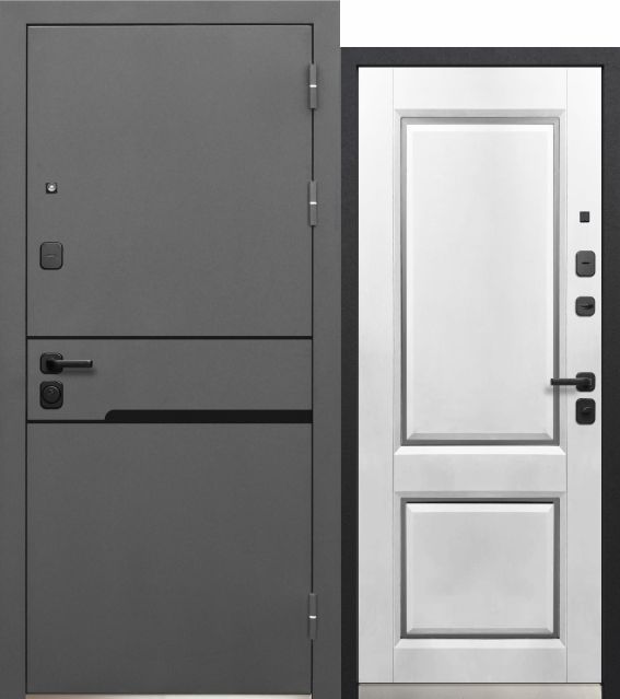 Дверь металлическая Luxor Классика Сатин графит Муар 7024 / Сатин графитДверь металлическая Luxor 2МДФ Куб Нео Сатин графит / Эмалит белый