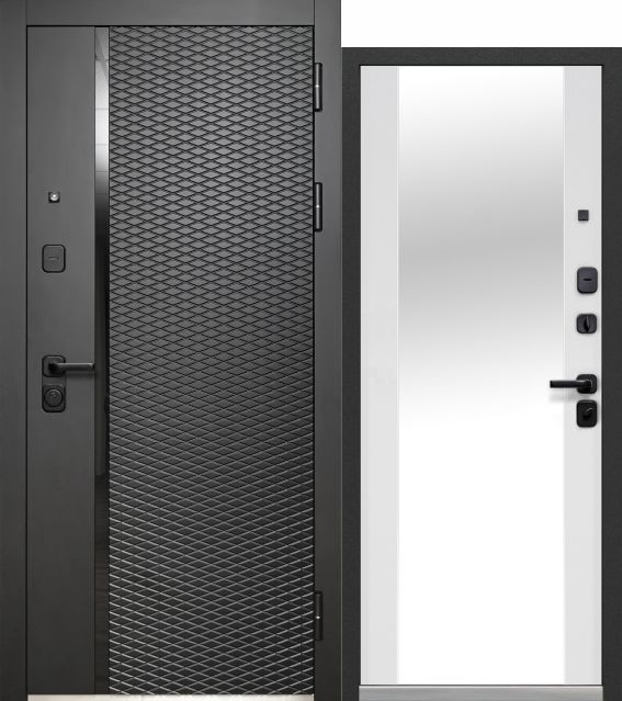 Дверь металлическая Luxor 2МДФ Ромбы Вертикаль Зеркало Антрацит софт / Эмалит белый