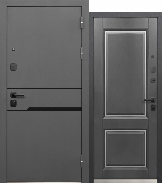 Дверь металлическая Luxor Классика Эмалит белый Муар 7024 / Эмалит белыйДверь металлическая Luxor 2МДФ Куб Нео Сатин графит / Эмалит белый